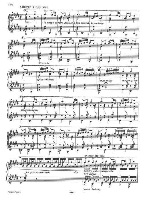 Liszt’s Hungarian Rhapsody No. 12 is a passionate and dramatic work that showcases the composer’s mastery of melody and harmony. The piece’s contrasting sections, with their lyrical melodies, fiery rhythms, and dramatic flourishes, create a sense of emotional intensity and virtuosic display. This arrangement for piano captures the essence of Liszt’s Romantic style, inviting pianists to explore the full range of emotions conveyed through this powerful and evocative piece.