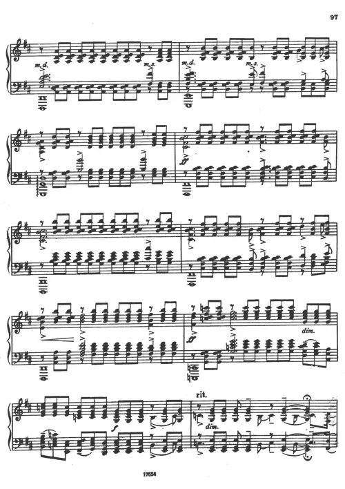 Rachmaninoff’s Prelude Op. 32 No. 10 in B minor is a dark and brooding work that showcases the composer’s ability to create a sense of mystery and intrigue. The piece’s opening theme, a simple yet haunting melody, is developed through a series of increasingly complex variations, culminating in a dramatic climax. This arrangement for piano captures the essence of Rachmaninoff’s Romantic style, inviting pianists to explore the emotional depths and technical challenges of this beloved piece.