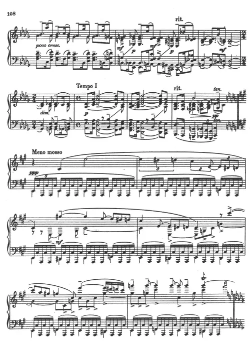 Rachmaninoff’s Prelude Op. 32 No. 13 in D-flat major is a melancholic and introspective work that concludes the set of 13 Preludes. The piece’s simple yet evocative melody, adorned with delicate ornamentation and expressive rubato, unfolds over a gently rippling accompaniment, creating a sense of longing and introspection. This arrangement for piano captures the essence of Rachmaninoff’s Romantic style, inviting pianists to explore the nuanced emotions conveyed through this beloved piece.