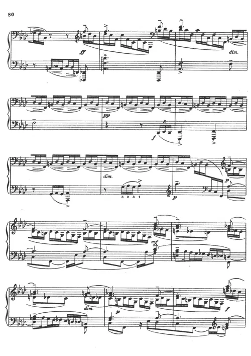 Rachmaninoff’s Prelude Op. 32 No. 6 in F minor is a brooding and dramatic work that evokes a sense of mystery and intrigue. The piece’s dark and brooding atmosphere, with its powerful chords and turbulent melodies, creates a sense of foreboding and emotional intensity. This arrangement for piano captures the essence of Rachmaninoff’s dramatic style, inviting pianists to explore the emotional depths of this beloved piece.